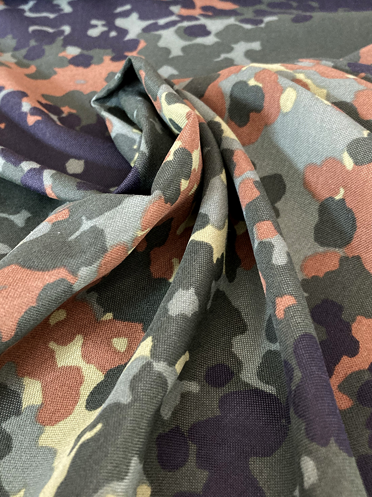 Sehr reißfestes aber leichtes Gewebe aus Polyamid mit Bundeswehr Flecktarnmuster bedruckt. Vielseitig zu verwenden für leichte Gepäckstücke, strapazierfähige Bekleidung Hängematten oder auch Tarps. Der Stoff ist wasserabweisend, aber nicht wasserdicht.