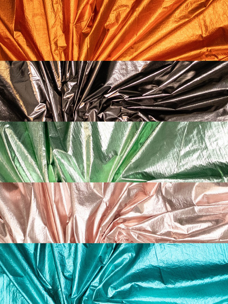 Dieses ultraleichte Nylongewebe mit metallisch schimmernder Oberfläche hat ein Gewicht von nur 45 g/m².