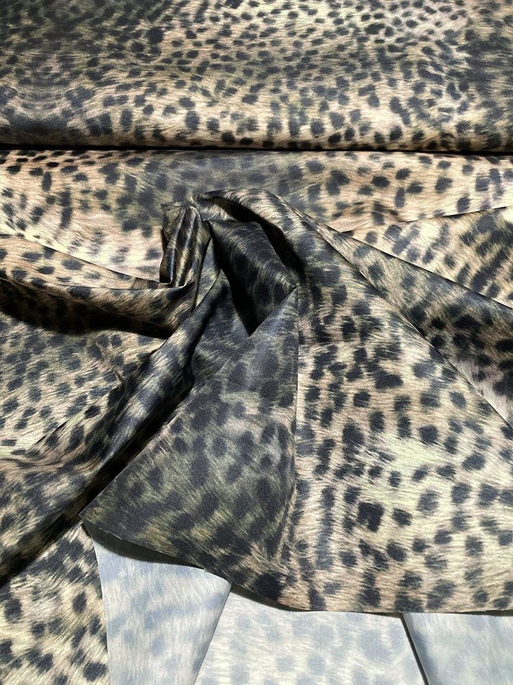 Leichter aber strapazierfähiger Taft mit aufregendem Leodruck. Super für Steppjacken und Westen, aber auch für Badeshorts luftige Blousons oder auchstabile Einkaufsbeutel. Winddicht und wasserabweisend. (Nicht 100% wasserdicht) In Verbindung mit unserem fluffigen, leichten Vlies kannst Du Jacken und Westen nähen, die fast wie mit Daunen gefüllt wirken. Dieser leichte Stoff eignet sich auch gut als pflegeleichtes Taschenfutter.