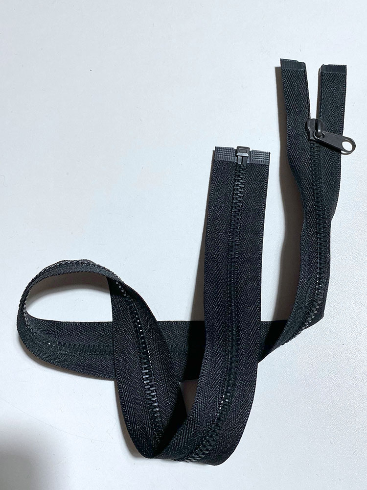 Teilbarer Reißverschluss mit 6mm breitem Metallzähnchen-Verschluss. Die Zähnchen und der Schieber sind aus geschwärztem Messing. Für Jacken, Westen, Mäntel oder Taschen. Am offenen Ende bei Bedarf einfach zu kürzen. Am Schieber ist ein Griff mit recht großer Öse, an der sich z.B. gut Bänder als Griffverlängerung befestigen lassen.